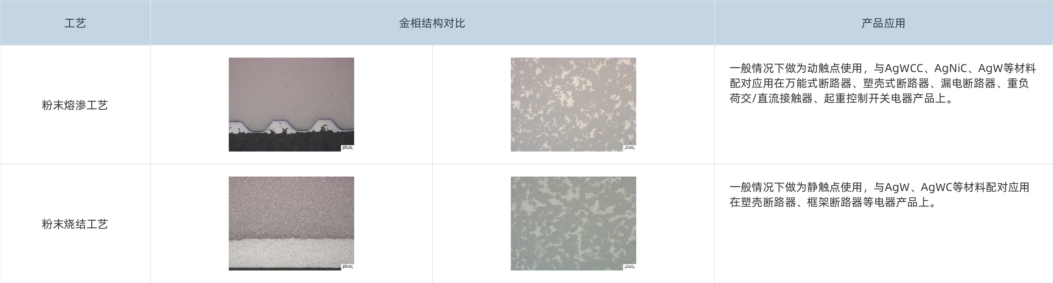 銀鎢觸點(diǎn)材料一般采用粉末熔滲法制備,根據(jù)材料使用需求,亦可使用粉末燒結(jié)法制備。通過(guò)粉末燒結(jié)法制備的AgW觸點(diǎn)材料既具備了AgW類產(chǎn)品低電阻率、高熔點(diǎn)、耐燒蝕的特性,又兼顧了粉末燒結(jié)工藝特有的焊接層材料可選,單獨(dú)復(fù)合的優(yōu)點(diǎn)。同時(shí),該加工工藝制備的AgW類材料工作面無(wú)純銀層,有利于提高觸點(diǎn)的分?jǐn)嗄芰?,可做靜觸點(diǎn)使用。
