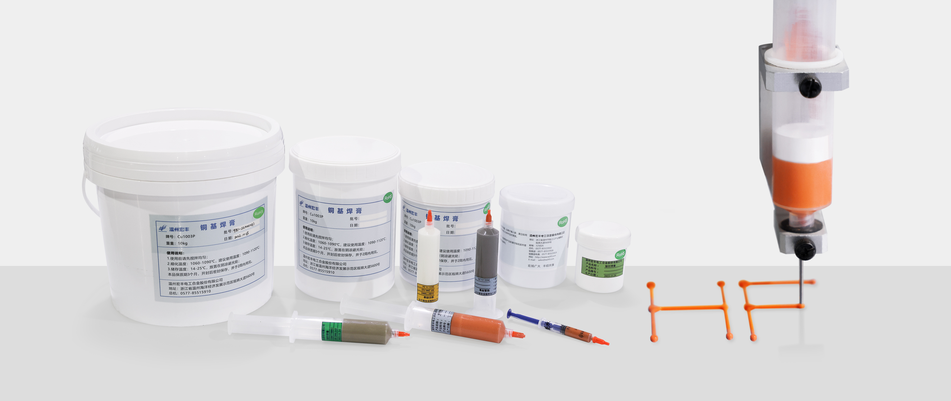 宏豐擁有自主研發(fā)的一系列焊膏,適用于各種條件的空氣釬焊(感應(yīng)焊接、電阻焊接等)、真空釬焊等,主要包括銀基焊膏、銅基焊膏、鎳基焊膏、鋁基焊膏等。